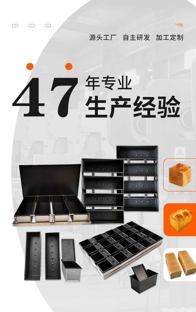 主要產(chǎn)品:鋁合金一體成型蛋糕模具,冷軋板沖壓不粘蛋糕、面包模具,鍍鋁板不粘蛋糕、面包模具,不銹鋼烤盤模具,各種規(guī)格吐司、法棍、漢堡、平盤產(chǎn)品,以及多類型食品機械等。為更精準地滿足市場需求,企業(yè)依托自身優(yōu)勢,為廣大合作伙伴提供產(chǎn)品個性化訂制服務。